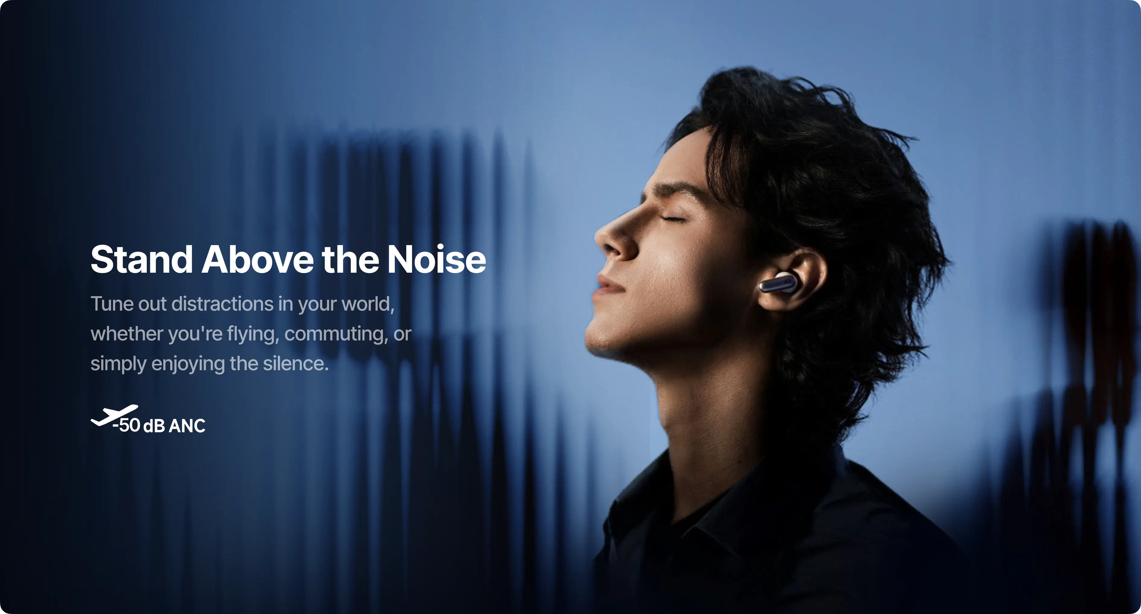 Delivering powerful noise cancellation without pressure discomfort—for truly immersive listening anywhere.